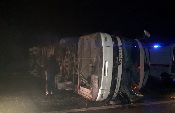В салоне автобуса, кроме двух водителей, находились 56 пассажиров.