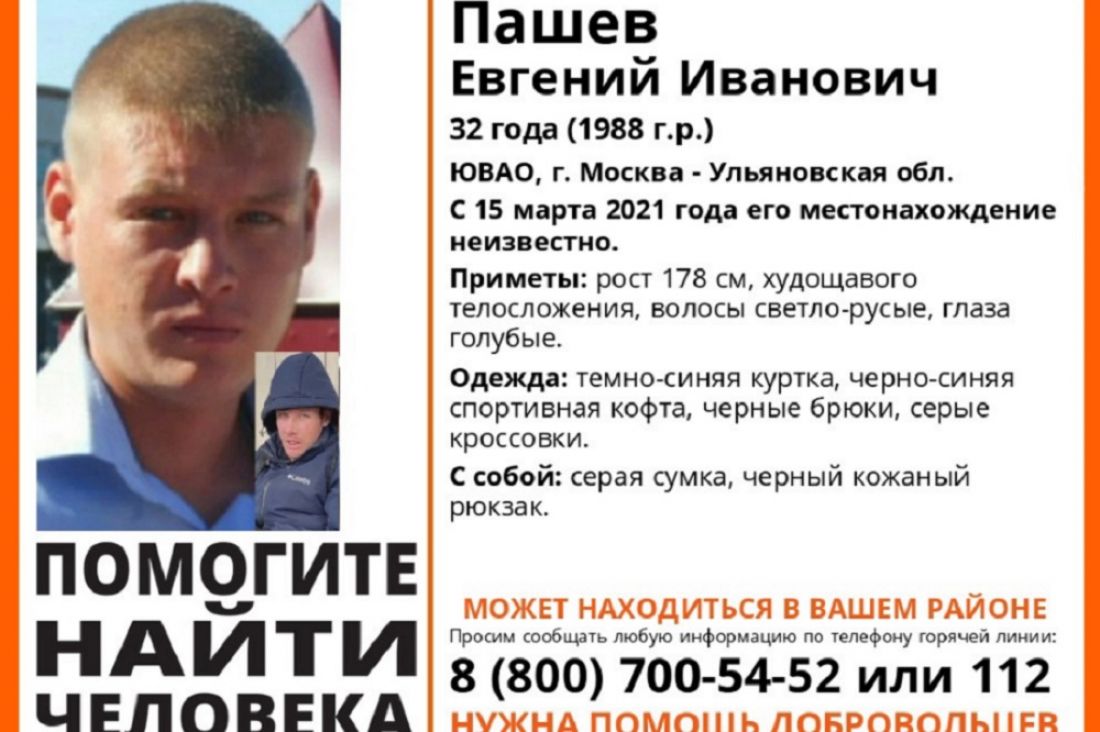 32-летний мужчина может находиться в Москве и Ульяновской области, а также в любых других городах. Об этом сообщают волонтеры поискового отряда «Лиза Алерт».