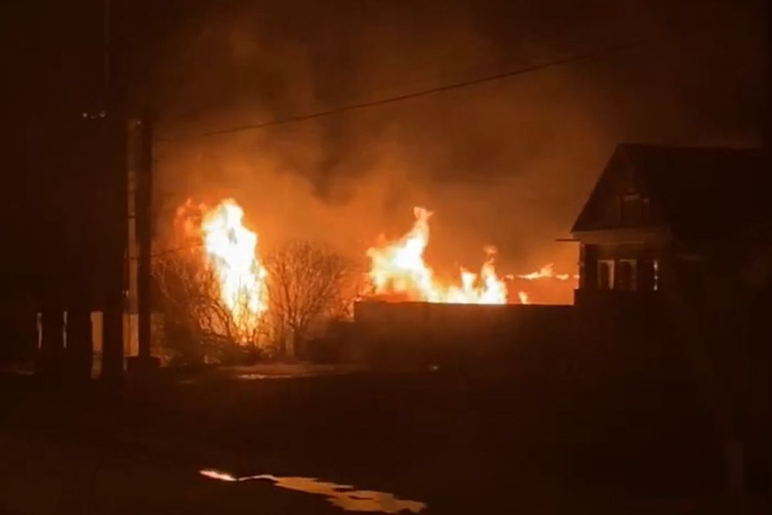 О пожаре стало известно в 2:38 ночи. Известно, что была спасена хозяйка расположенного рядом дома — женщина 1931 года рождения.
