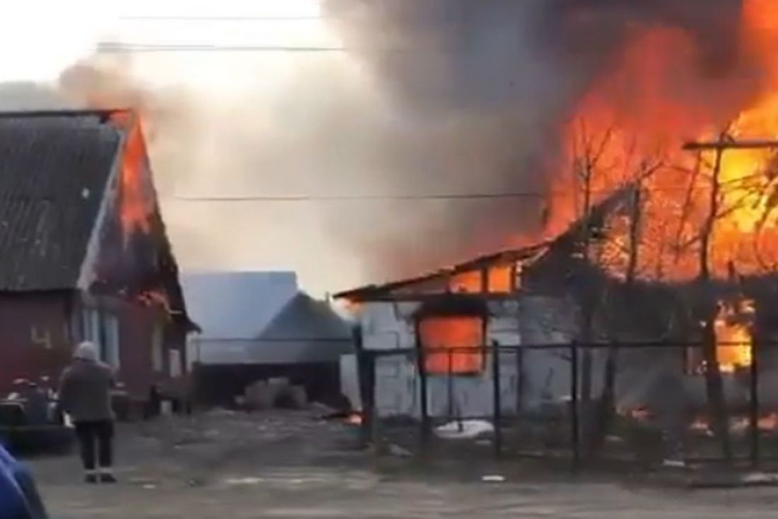 В Пензенской области сняли на видео пожар, уничтоживший два дома