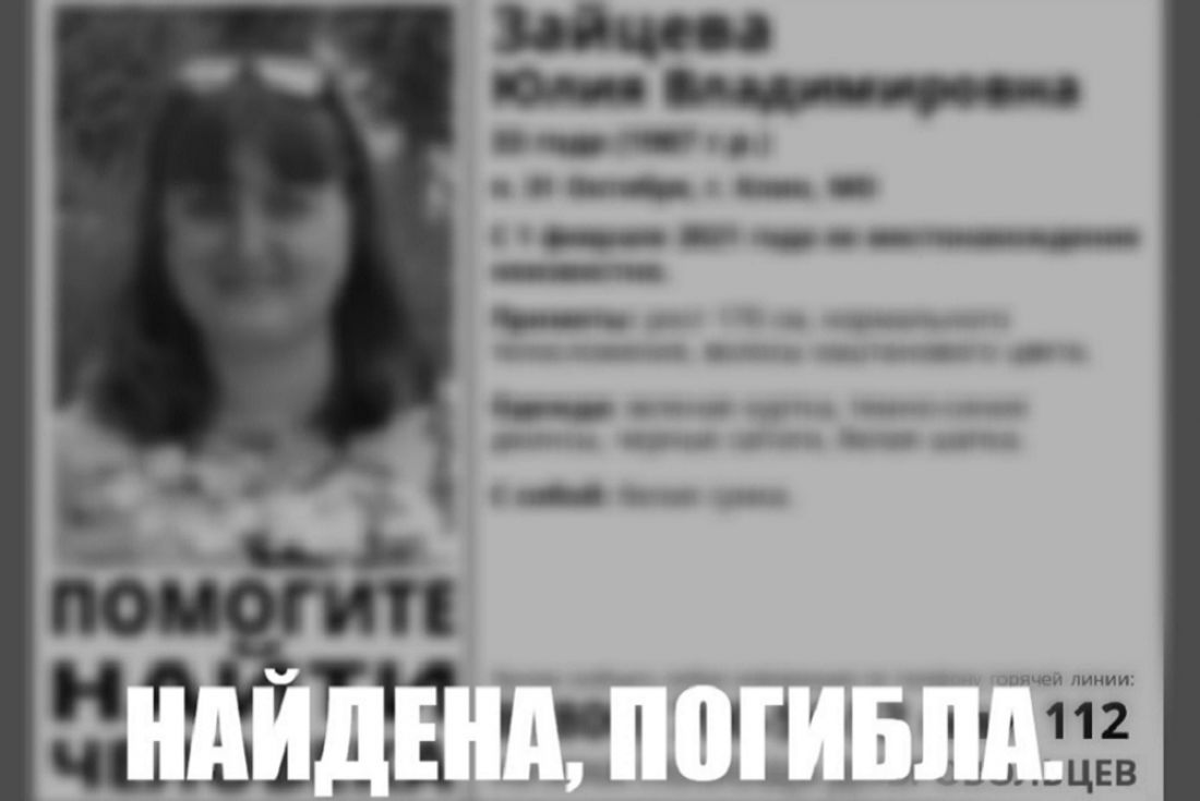 Добровольцы отряда «Лиза Алерт» сообщили о судьбе Юлии Зайцевой, которой пропала полтора месяца назад.