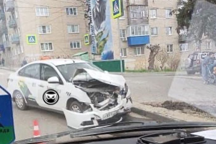 У автомобиля службы такси серьезно пострадала передняя часть: деформирован капот, отвалился бампер. Вторую машину с вмятинами на боку вынесло на тротуар.
