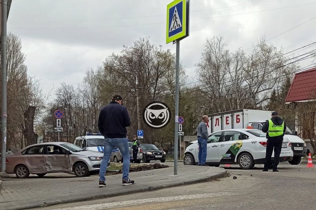 В Пензе после жесткой аварии с такси автомобиль вынесло на тротуар. Фото