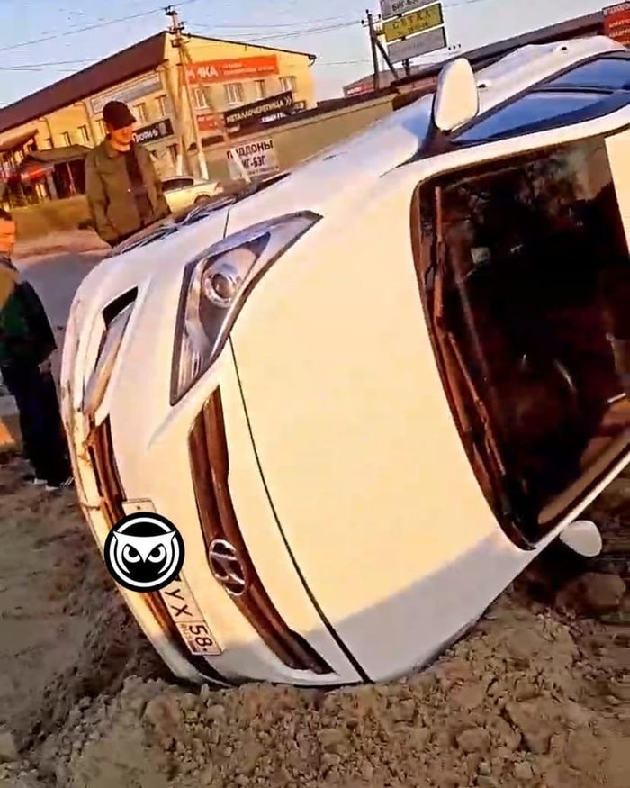 Фотографии с места аварии появились в группе «Сова Пенза авто» социальной сети «ВКонтакте». Машина лежала там, где, судя по установленным конструкциям, проводились ремонтные работы.