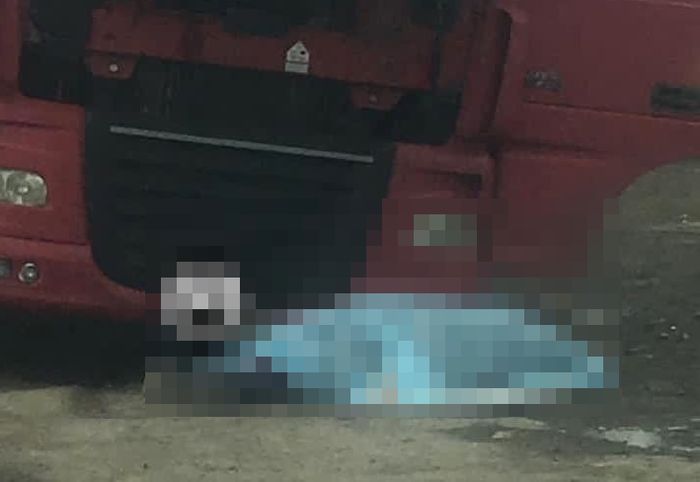 В сети появилась фотография с места происшествия. На снимке видно накрытое тело и перекошенную на левую сторону фуру. Личность погибшего устанавливается.