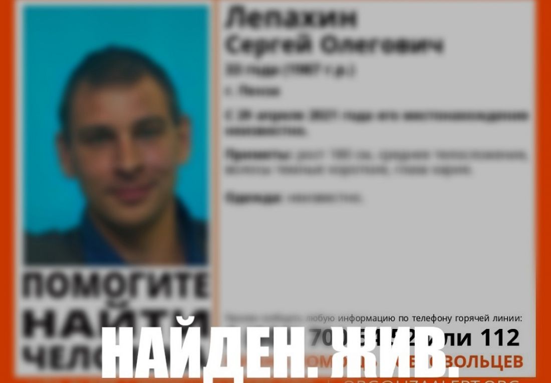 «Лепахин С.О. найден, жив», - такой комментарий появился под ориентировкой сегодня.