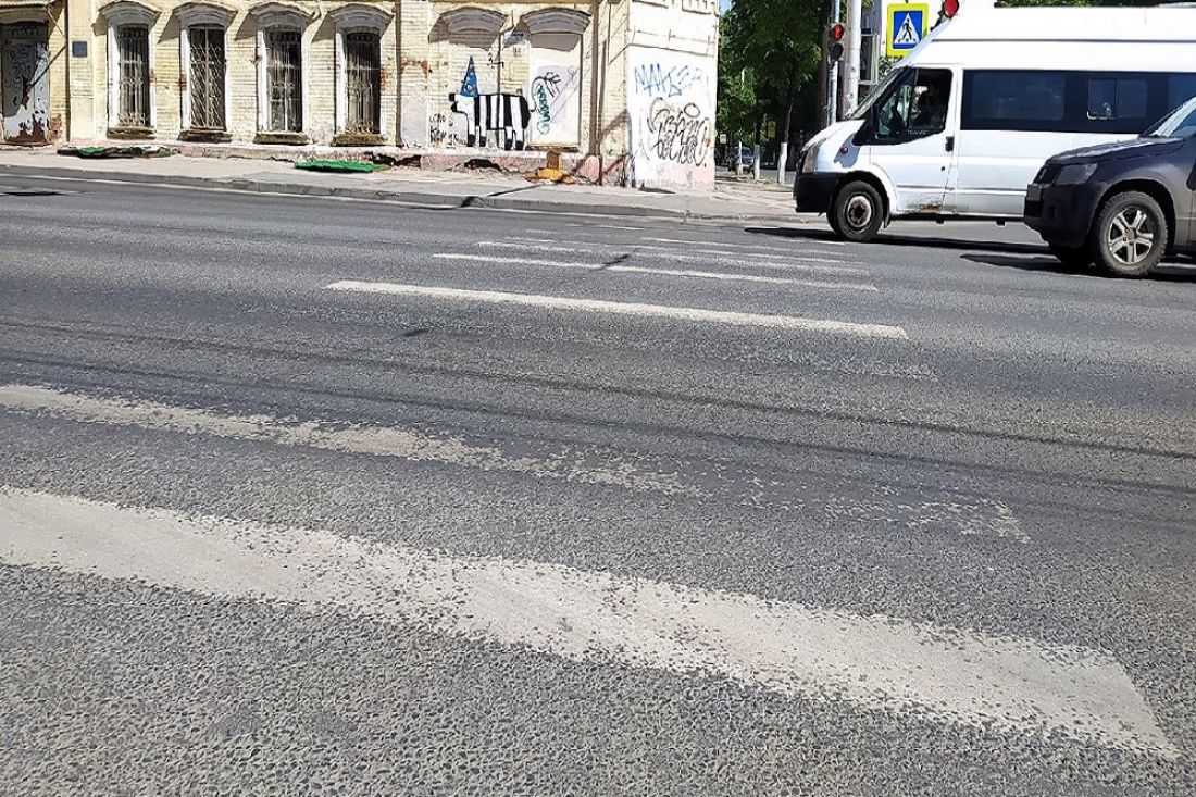Напротив пешеходного перехода у одного из пензенских перекрестков встретились две зебры — одна санкционированная, но практически невидимая, а вторая, напротив, не совсем законная, но радующая глаз своей яркостью.