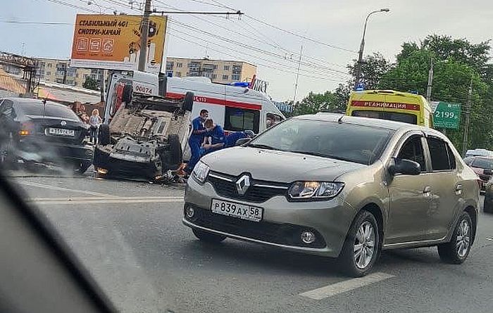 В распоряжении редакции «Пенза-Взгляд» появились фотографии с места дорожно-транспортного происшествия. Предположительно, в результате столкновения перевернулся на крышу «Renault Logan». Повреждения замечены также у автомобиля «Volkswagen Polo».