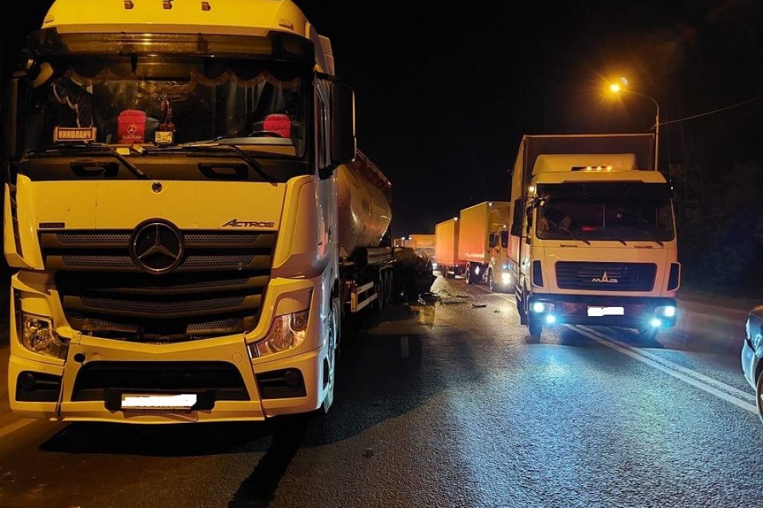 От удара легковушка столкнулась с грузовым автомобилем «Mercedes-Benz Actros» с полуприцепом, за рулем которого находился 59-летний житель Пензенской области. Он, в свою очередь, врезался в грузовик «Volvo» с полуприцепом, которым управлял 63-летний житель Беларуси.