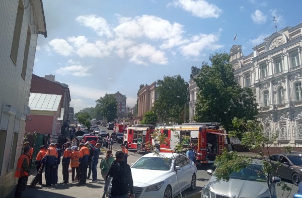 На улице Володарского скопилась толпа зевак, также к месту ЧП прибыло несколько пожарных машин.