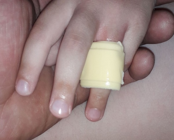 По ее словам, мальчик играл и надел на палец руки пластмассовое кольцо. Освободить зажатый палец не получилось.