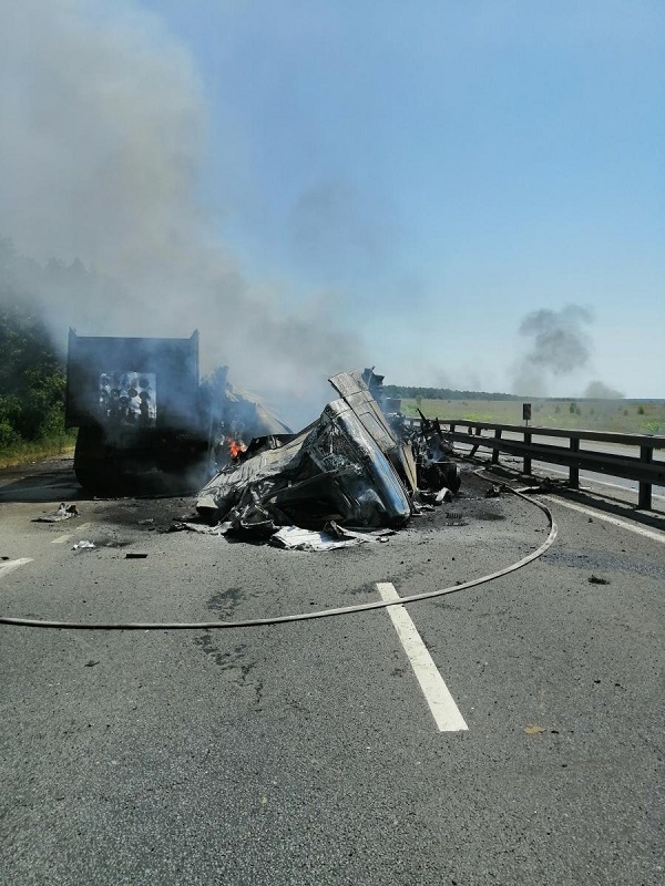 Предварительно установлено, что 37-летний пензенец, находившийся за рулем грузовика «DAF» с полуприцепом, не выбрал безопасную дистанцию и врезался в самосвал «Volvo», которым управлял 39-летний рязанец. В результате столкновения первое транспортное средство опрокинулось на проезжую часть и загорелось.