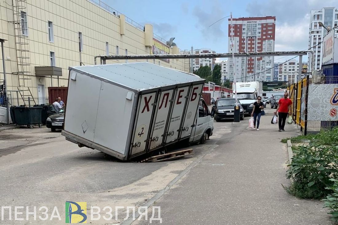 Грузовой автомобиль провалился под асфальт на проспекте Строителей в Пензе