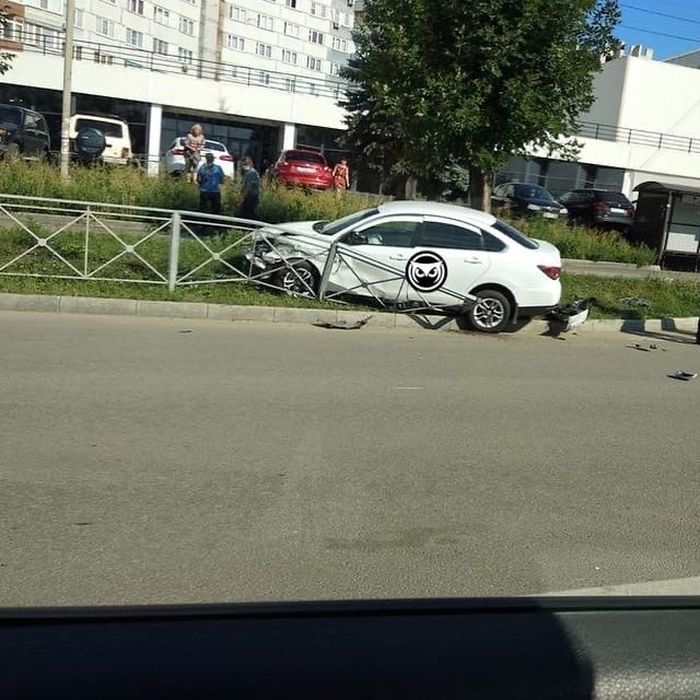На снимках, опубликованных в группе «Сова Пенза авто», видно, что машина по неизвестным причинам потеряла управление и врезалась в ограждение. Она остановилась на газоне, отделяющем проезжую часть от тротуара.