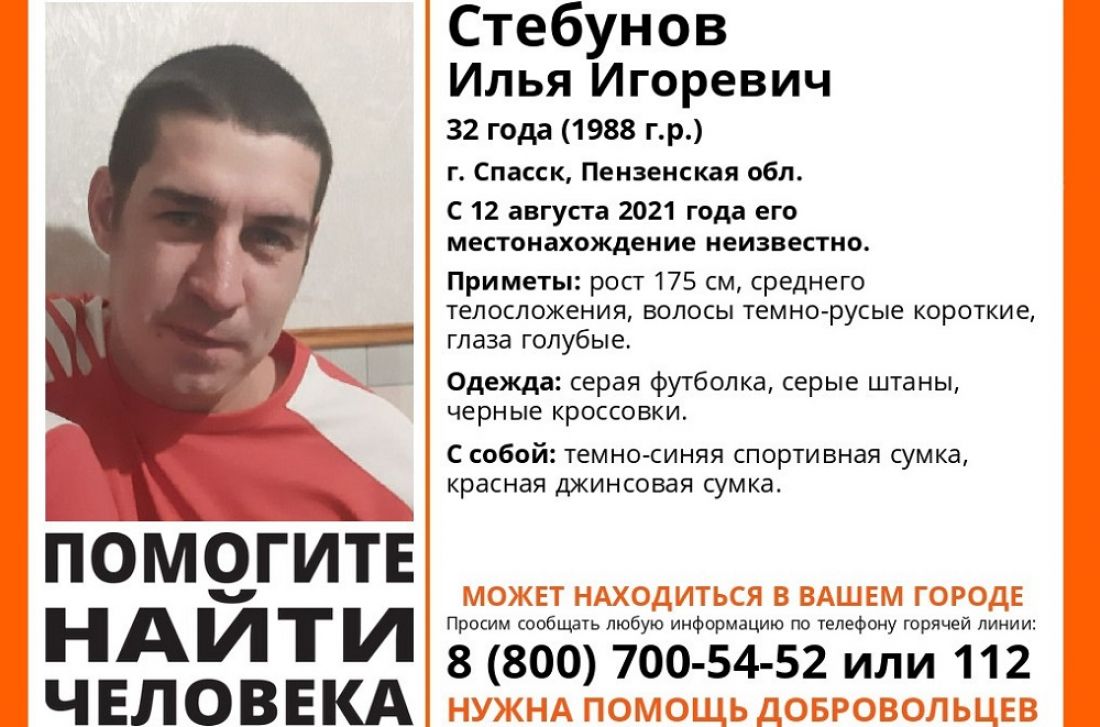 Илья Стебунов, проживающий в городе Спасск, пропал на прошлой неделе – 12 августа. Он ушел из дома в неизвестном направлении, и до сих пор родственники ничего не знают о его судьбе.