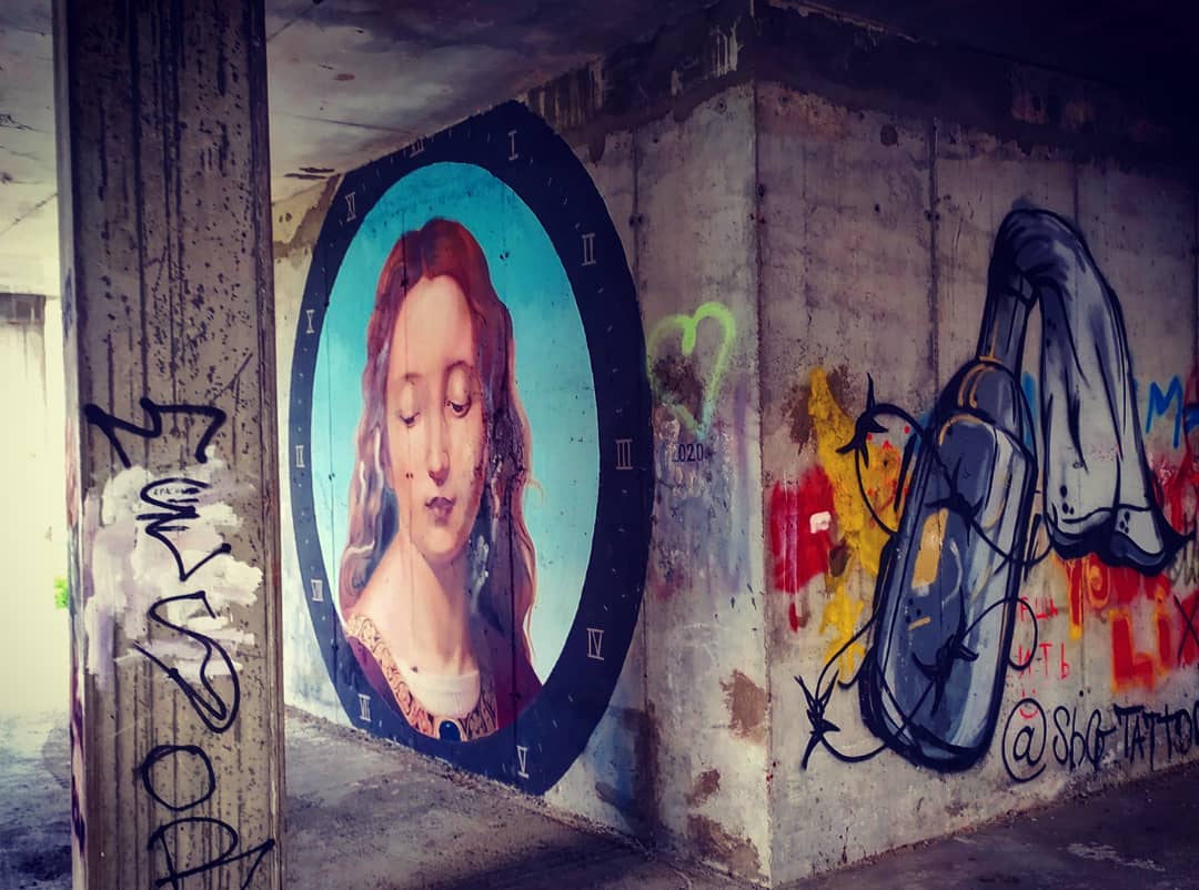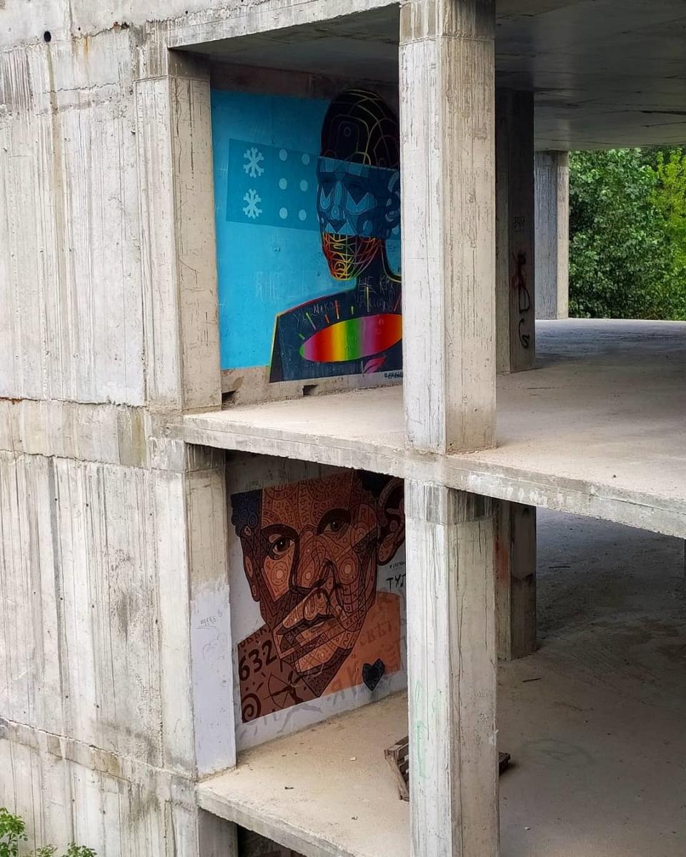 Ее местонахождение мы раскрывать не будем, хотя бы по той причине, что посещать недостроенный объект опасно. Предлагаем просто полюбоваться на творения уличных художников, расположенные в этой необычной галерее.