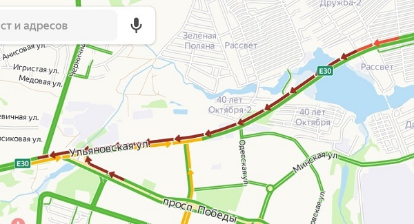 Автомобилисты объезжают затор по городу и выезжают на трассу или со стороны проспекта Победы, или доезжают до магазина «Мега», далее следуют до перекрестка с Зарей, где и разворачиваются в сторону Москвы.