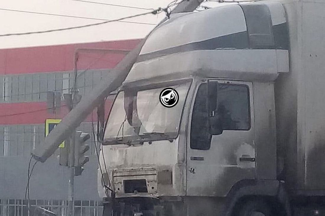 В Пензе потерявший управление грузовик сломал бетонный столб