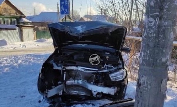 Более серьезная авария произошла на улице Свободы. В 13:30 в частном секторе легковой автомобиль врезался в столб. У машины покорежена вся передняя часть.