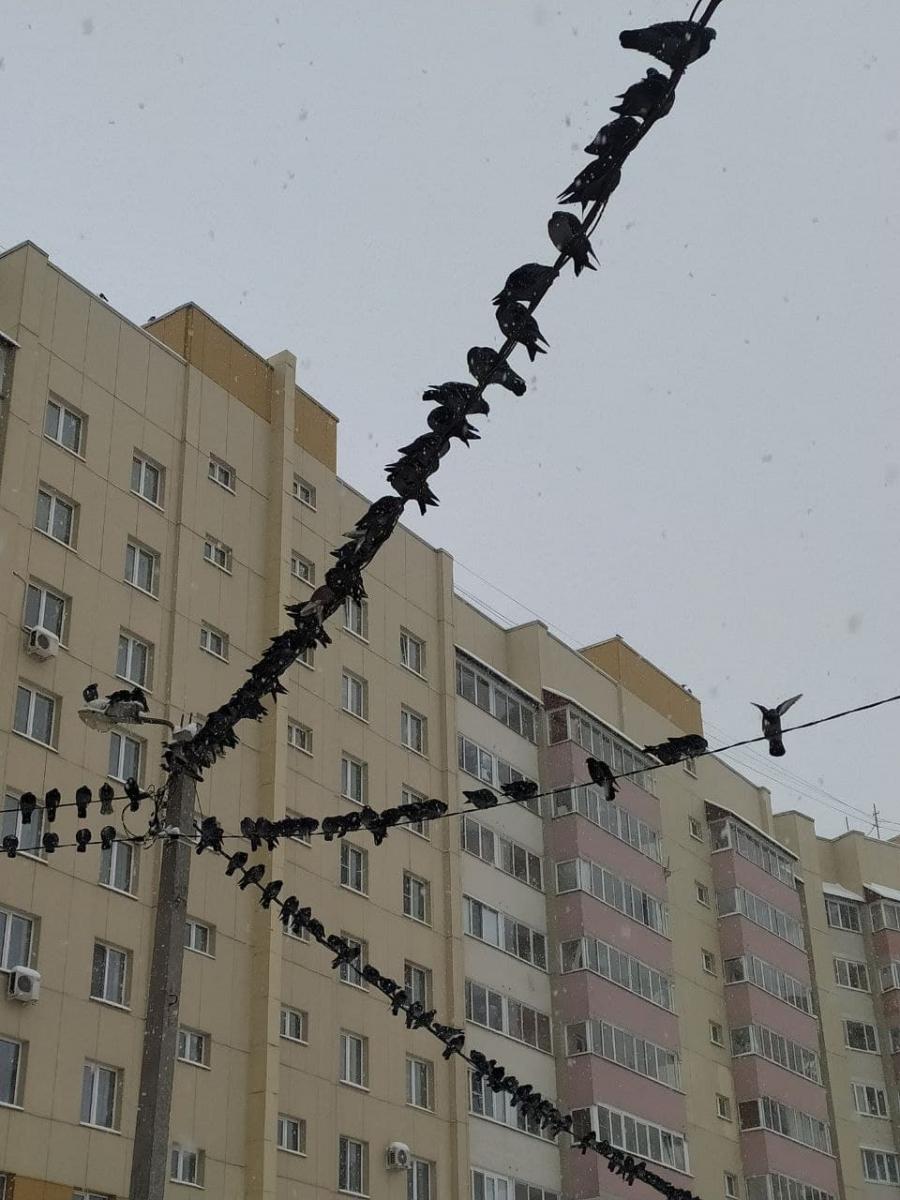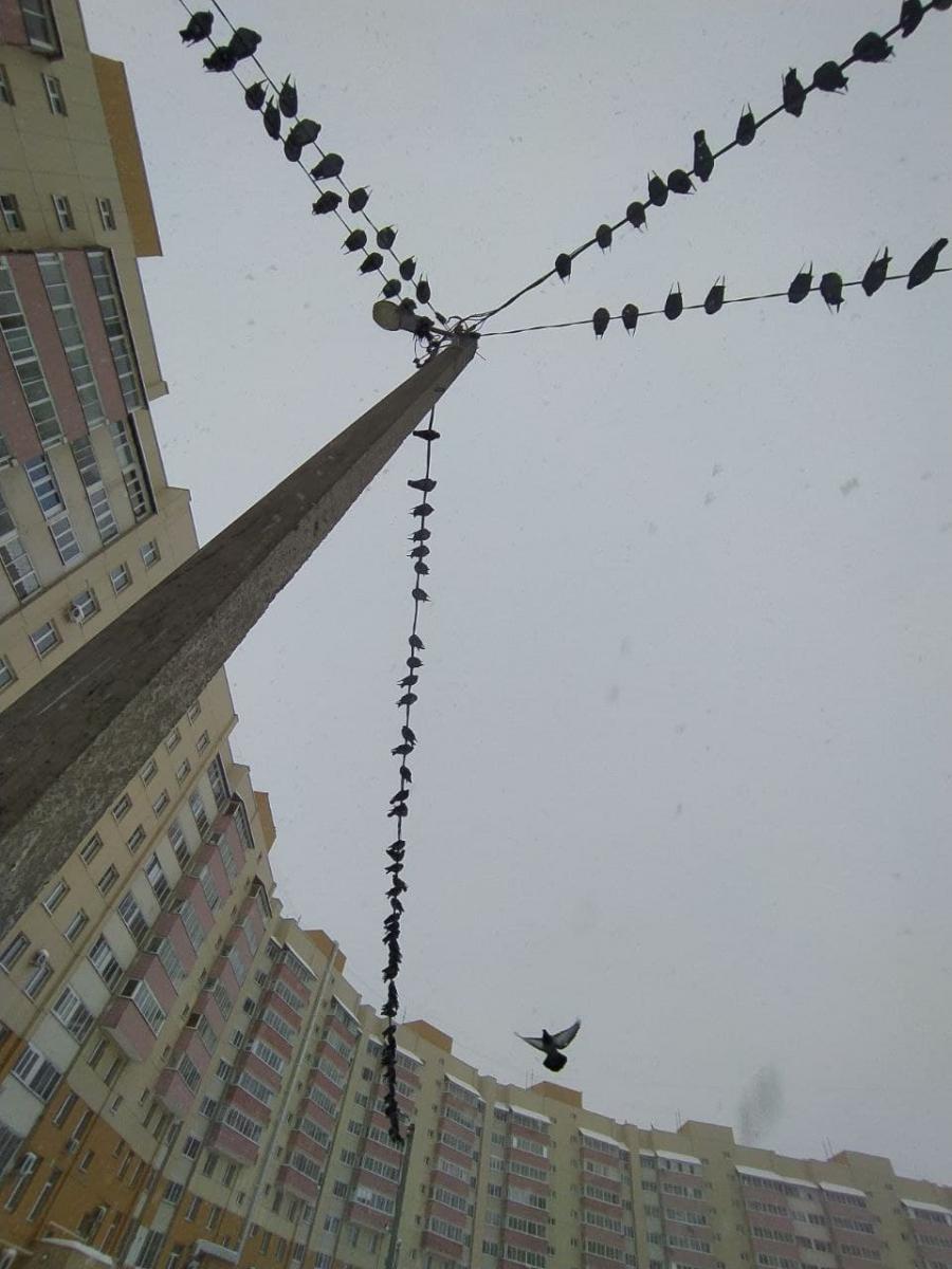 Голубиные гирлянды в одном из дворов ГПЗ-24 - очень подходящий декор для этого неформального «Нового года», когда большинство россиян уже избавились от елок в квартирах.