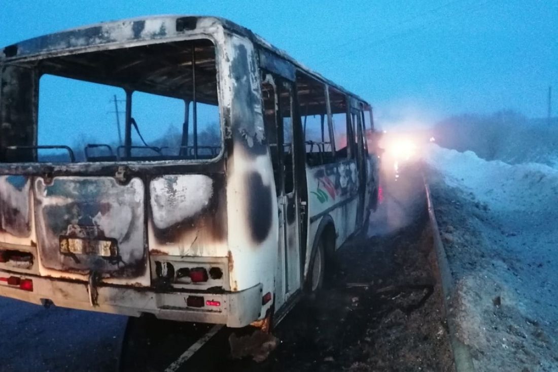 Транспортное средство вспыхнуло на улице Максима Горького в районном центре. В результате случившегося рейсовый автобус «ПАЗ», следовавший по маршруту «город Сердобск – село Кирово», полностью сгорел.