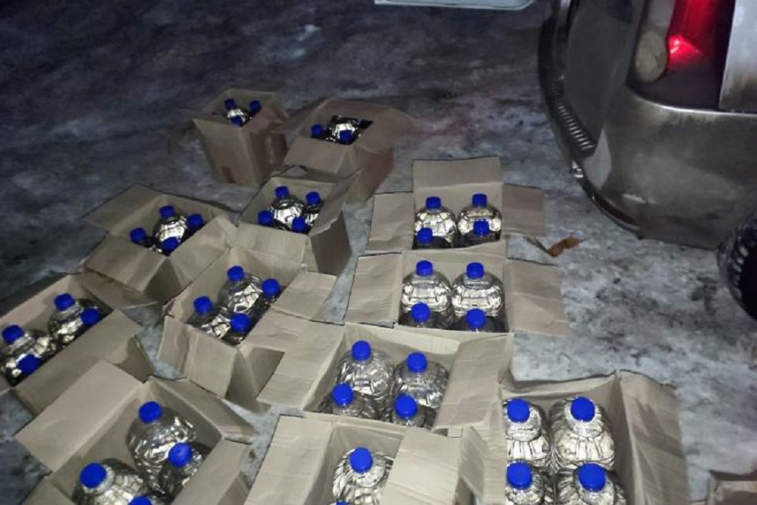 Инспекторы во время проверки документов заметили в салоне автомобиля 15 коробок, в которых лежали 60 пластиковых пятилитровых бутылей с жидкостью прозрачного цвета. Как оказалось, в емкостях находилось 300 литров спиртосодержащей продукции.