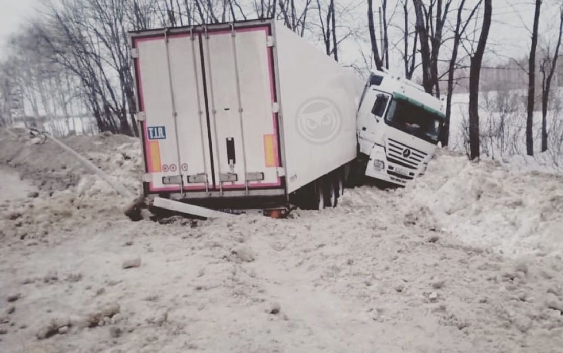 В Пензенской области грузовик слетел с трассы и оказался в снежном заносе