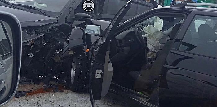 В одном из автомобилей сработала подушка безопасности. Автор снимка стал очевидцем последствий инцидента в 10:13. Понадобилась ли водителям и пассажирам помощь медиков, не уточняется.