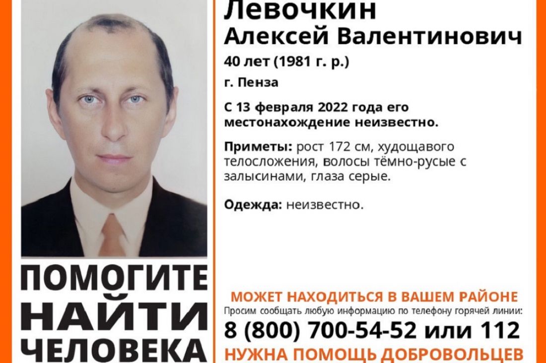 В Пензе вторую неделю ищут 40-летнего Алексея Левочкина