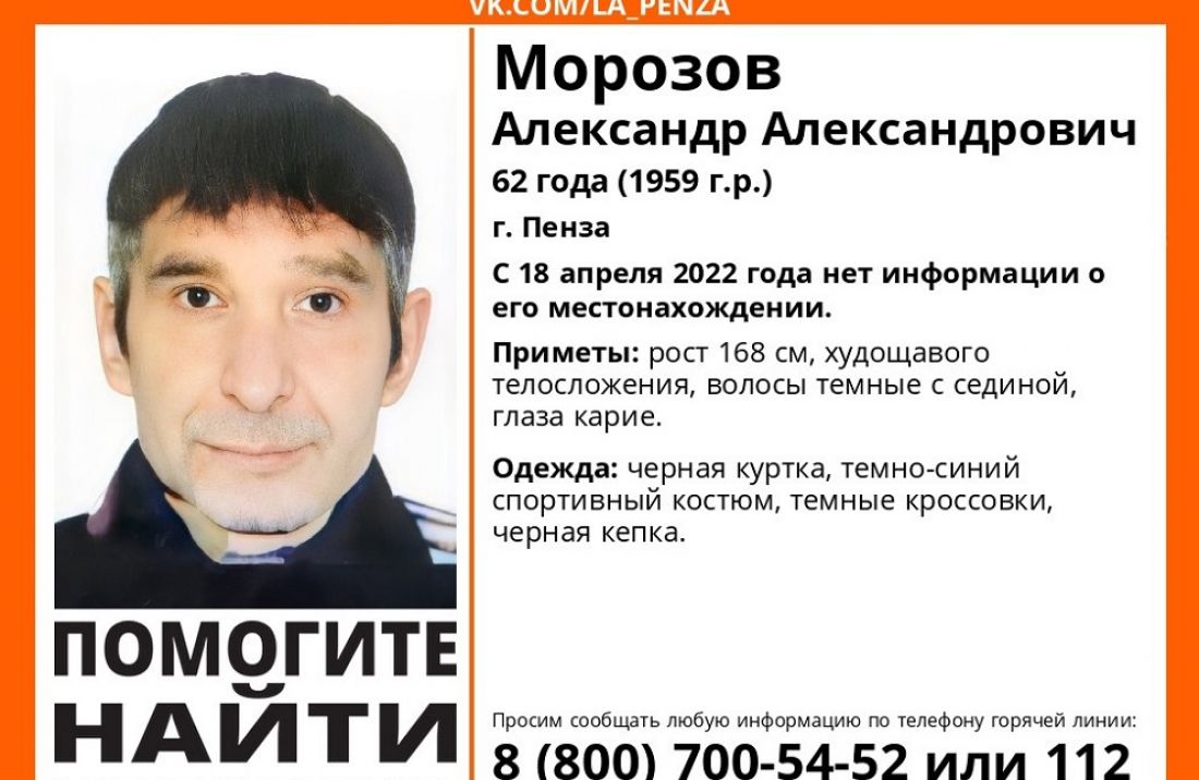 20 апреля стало известно об исчезновении 62-летнего жителя Пензы Александра Морозова.