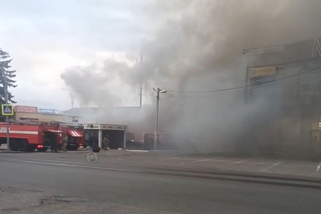 В ролике видны клубы серо-черного дыма и спасатели, которые тянут пожарные рукава к месту возгорания. Подробности случившегося уточняются в официальных источниках.