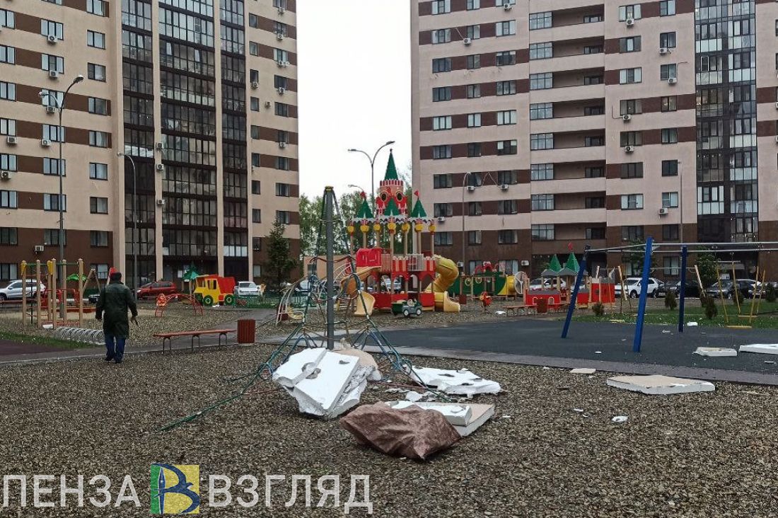 У пензенской многоэтажки из-за сильного ветра отвалился кусок утеплителя стены