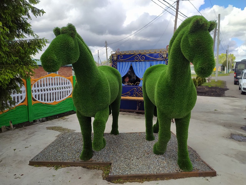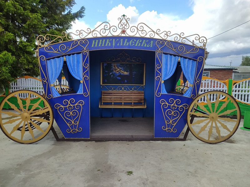 Жители с гордостью показали ему остановочный павильон в виде кареты и другие элементы благоустройства.