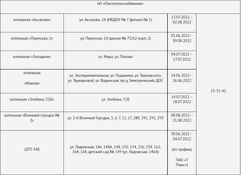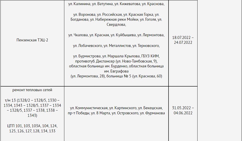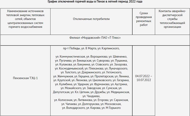 Стал известен график отключения горячей воды летом в Пензе