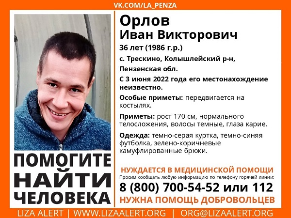 В Пензенской области разыскивают 36-летнего жителя села Трескино Колышлейского района. Местонахождение Ивана Орлова неизвестно с 3 июня.