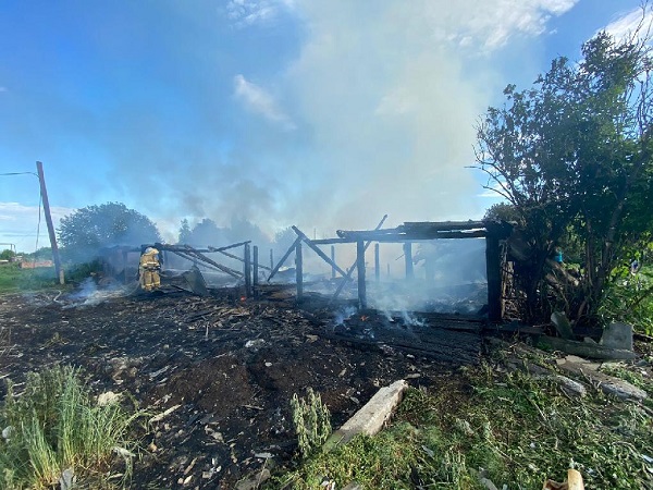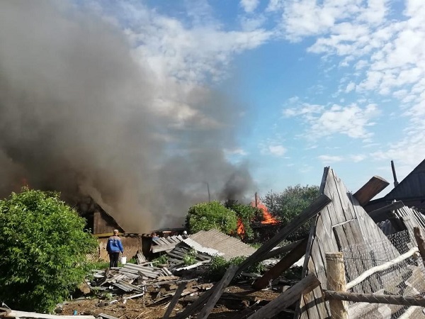 В ведомстве рассказали, что вчера в данном населенном пункте загорелась постройка во дворе одного из местных жителей. В итоге огонь распространился и уничтожил 5 надворных построек, включая жилой дом.