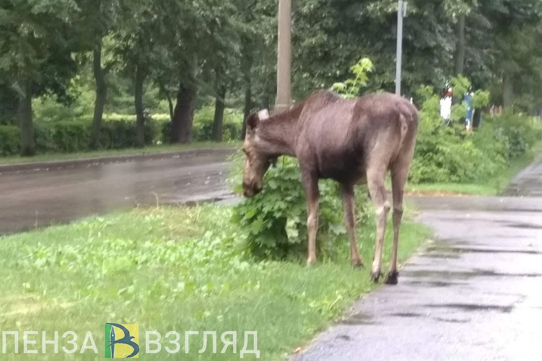 В пензенском районе Шуист сняли на видео, как лось перепрыгнул через едущий автомобиль