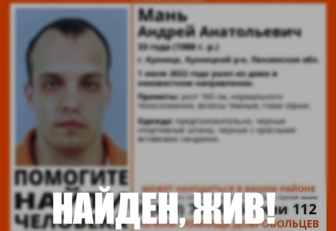 Напомним, поиском 33-летнего жителя Кузнецка занимались его близкие, полиция и добровольцы. Андрей Мань ушел из дома на прошлой неделе. Информации о его местонахождении у родственников не было с 1 июля. Где все это время находился кузнечанин, не сообщается.