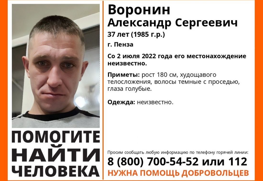 В Пензе ведутся поиски 37-летнего Александра Воронина.