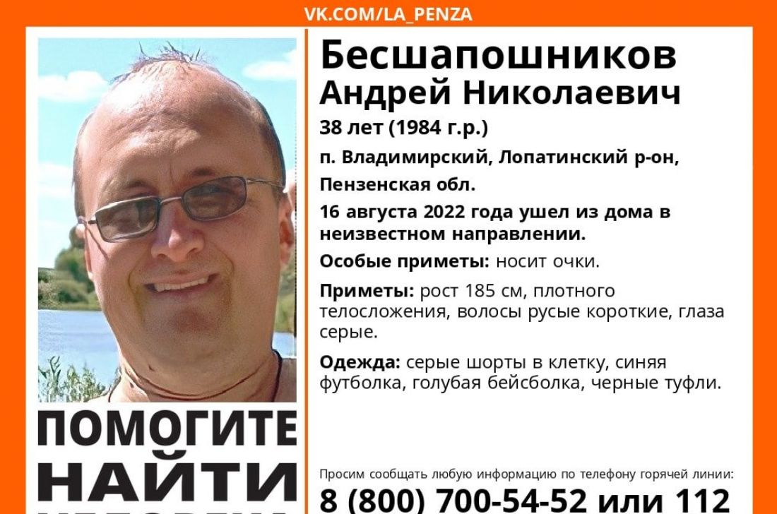 16 августа пропал 38-летний житель Лопатинского района Пензенской области.