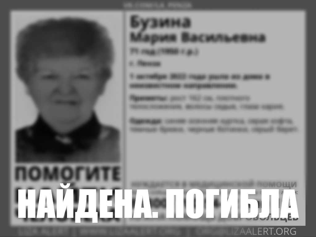 О трагическом исходе поисков сообщили сегодня, 4 октября, в 10:57 волонтеры поискового отряда в телеграм-канале «Лиза Алерт Пенза.Оповещения». «Найдена, погибла. Искренние соболезнования родным и близким», - говорится в сообщении, опубликованном в мессенджере «Телеграм».