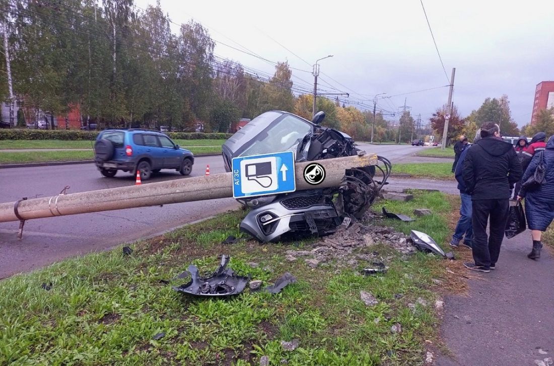 В Пензе иномарка снесла бетонный столб и раскромсала себе весь «перед»