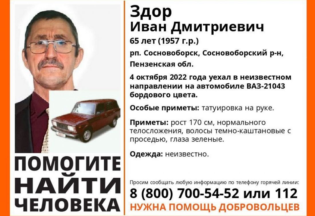 Пропал 65-летний житель р.п. Сосновоборск Пензенской области Иван Здор.