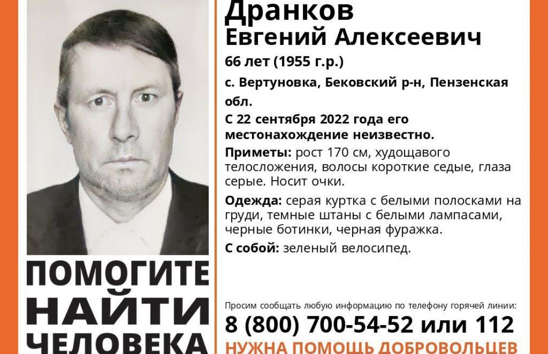 Евгений Дранков, проживающий в селе Вертуновка Бековского района, ушел из дома больше двух недель назад. У родственников нет информации о его местонахождении с 22 сентября.