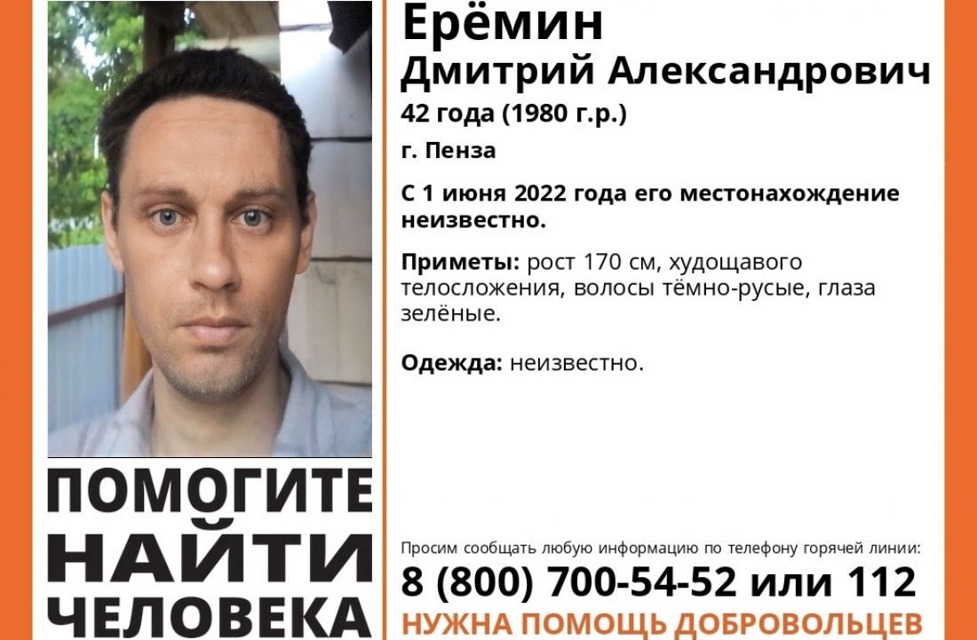 В Пензе с начала лета ищут 42-летнего Дмитрия Еремина