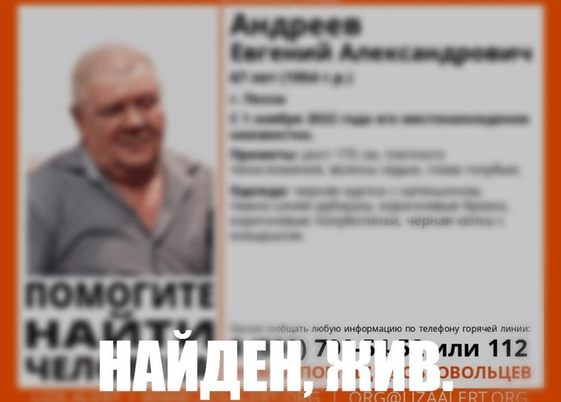 Под ориентировкой на пропавшего 2 ноября появилась надпись о результатах поиска: «Найден, жив». Где находился пензенец и при каких обстоятельствах был найден, не сообщается.