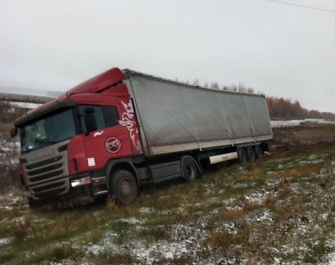 «Городище. Фура слетела с трассы. Время 11:00. Будьте аккуратнее», - написал автор поста.