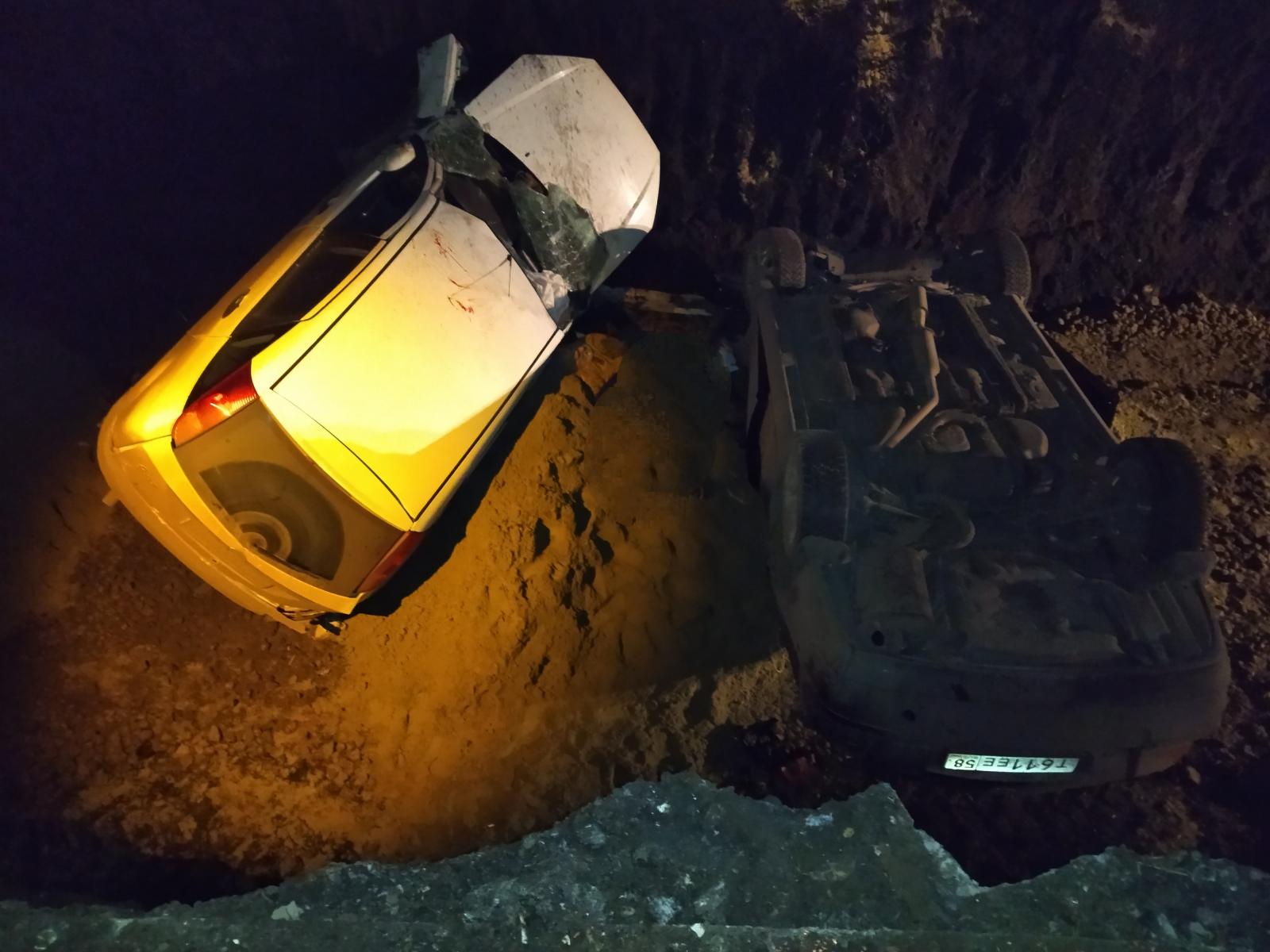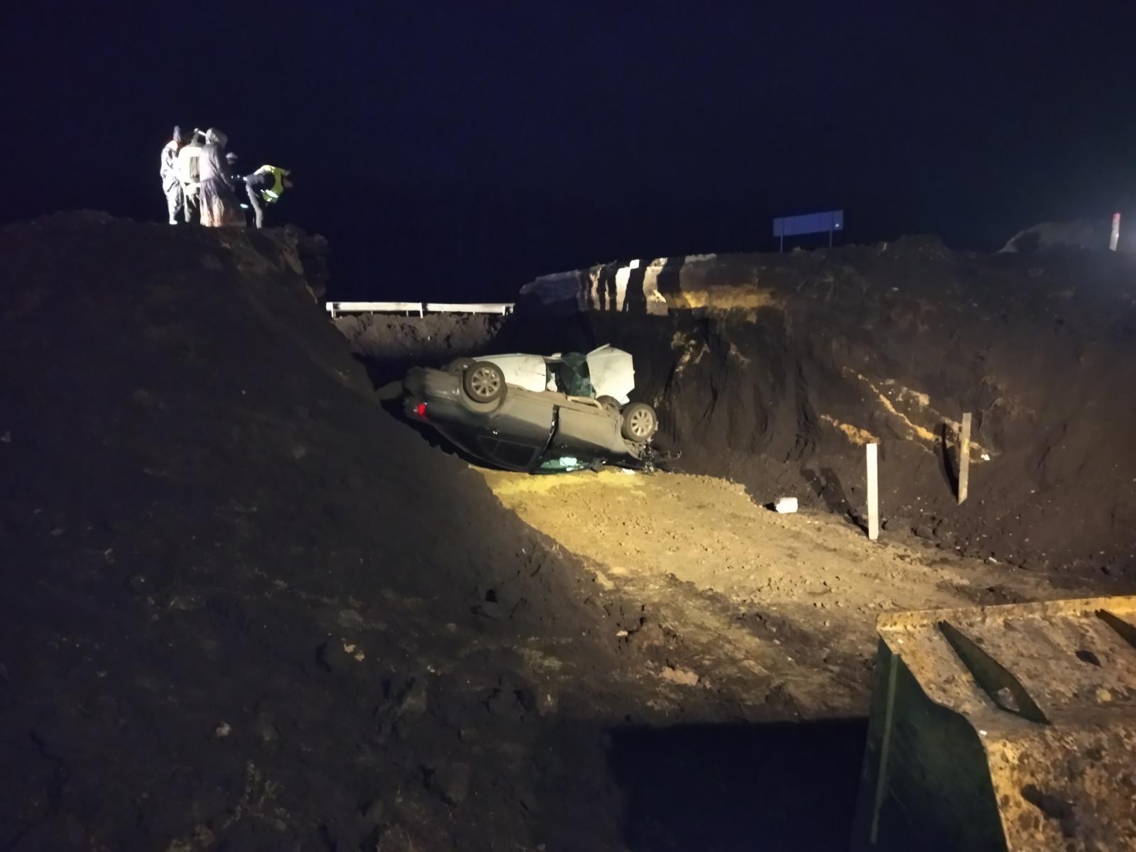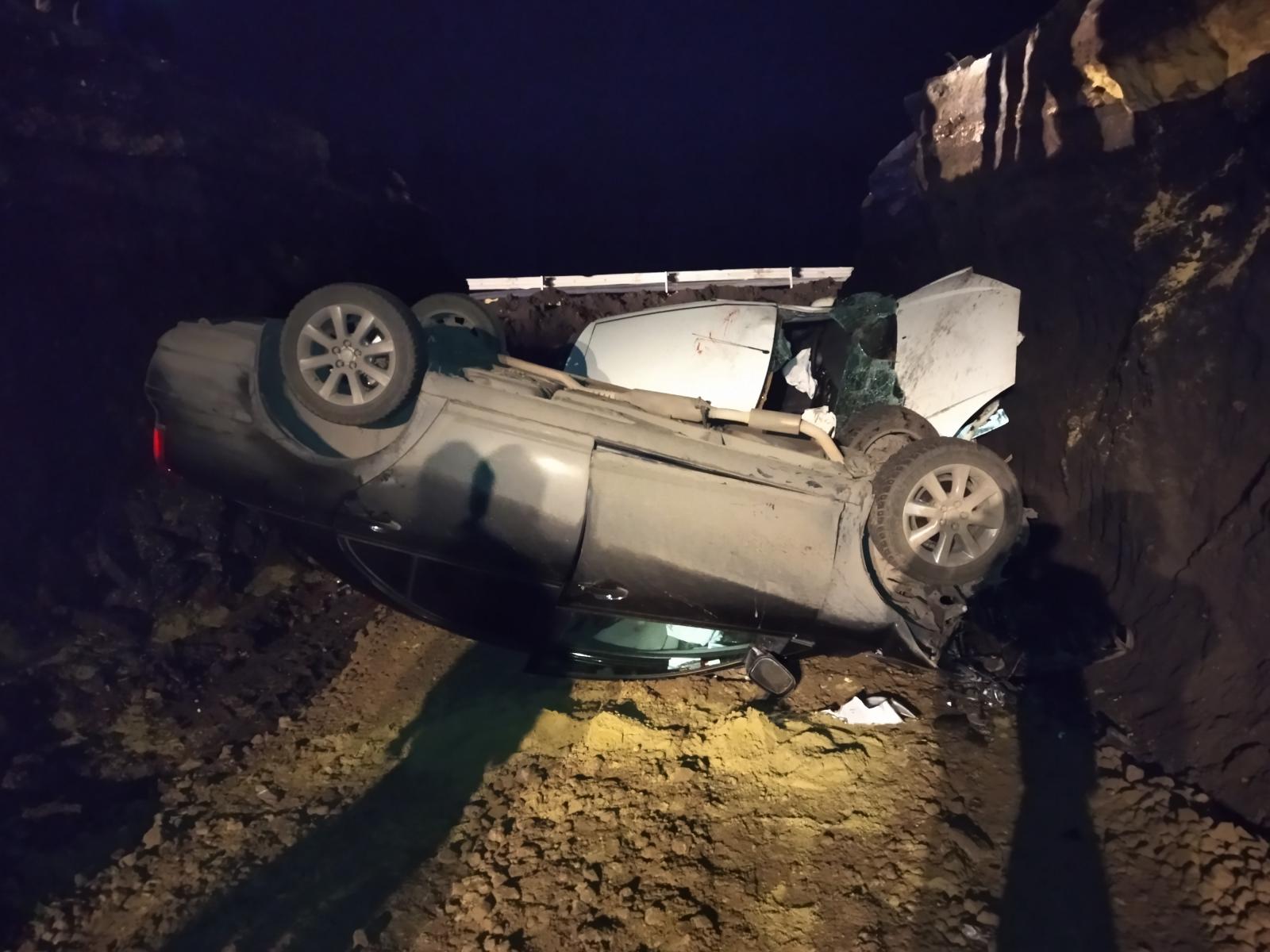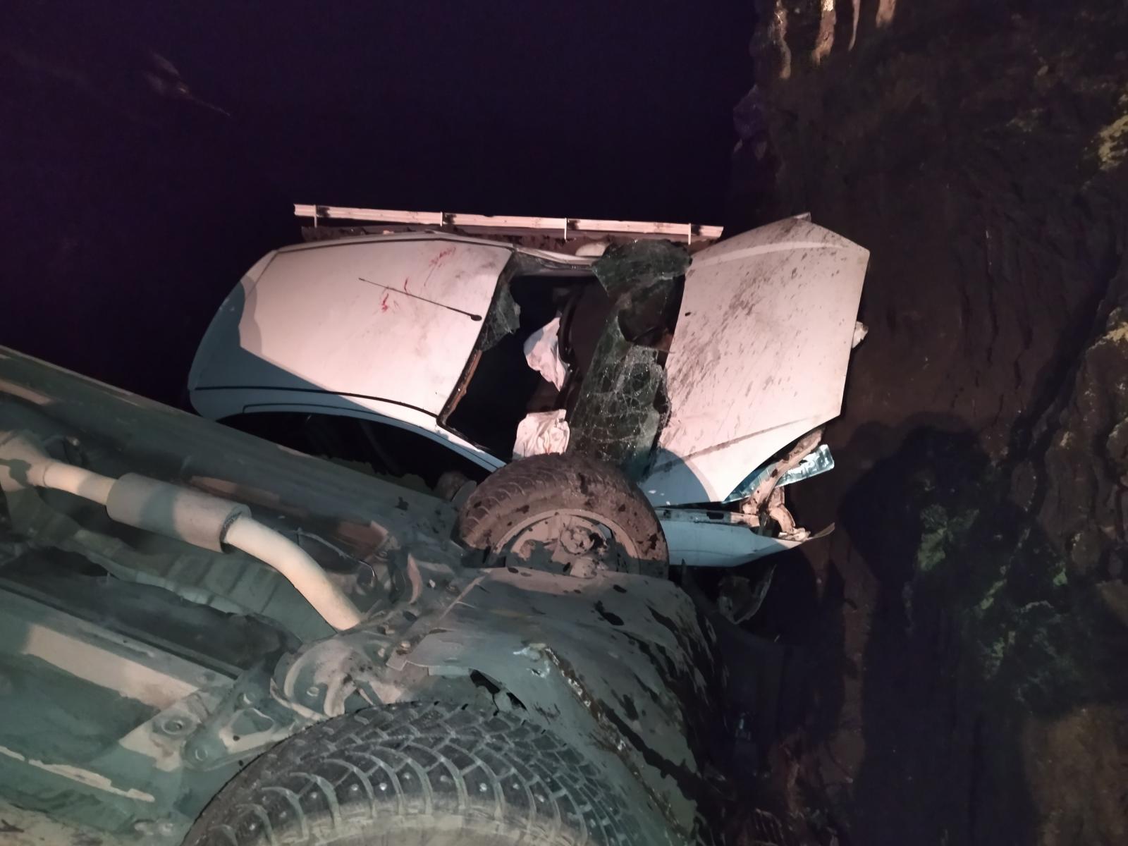 Появились фото с места ДТП под Каменкой, где две иномарки упали в котлован