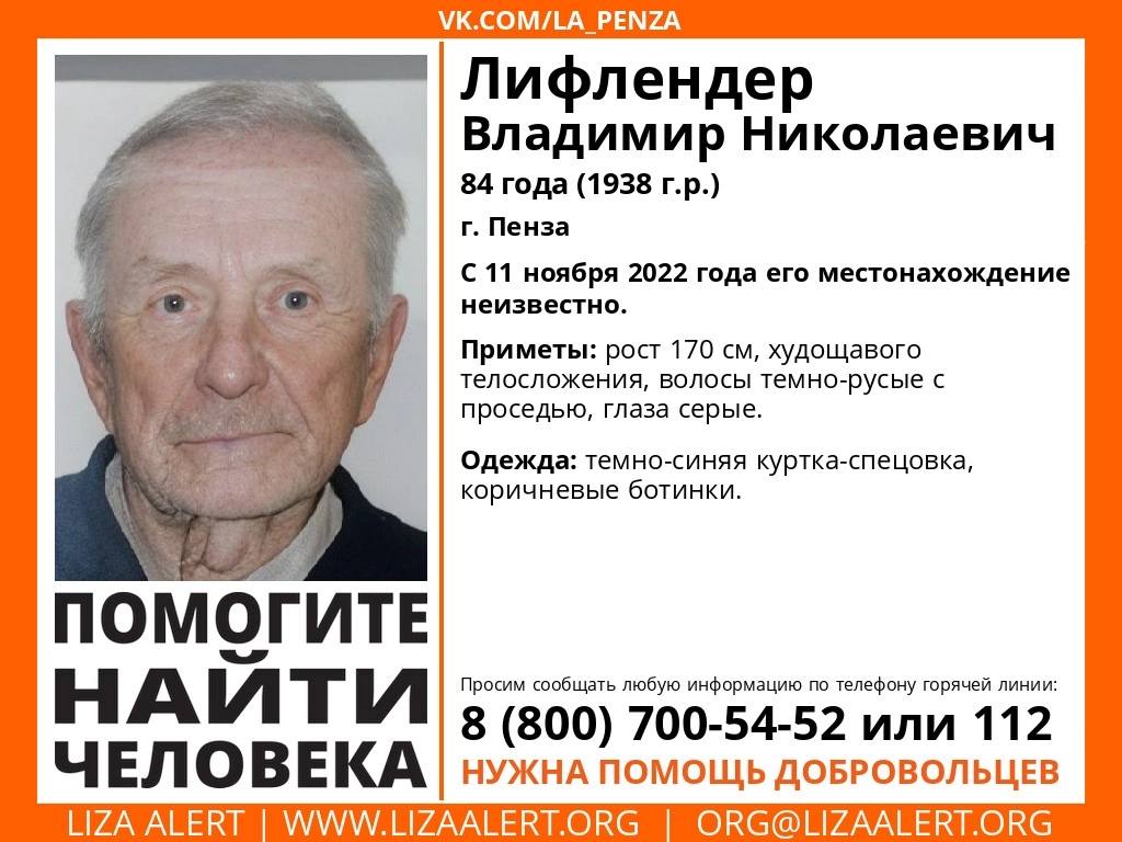В Пензе ведутся поиски 84-летнего Владимира Лифлендера.