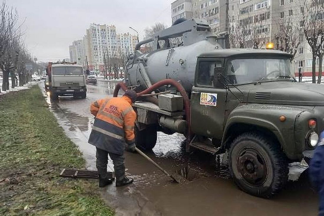 Работники МБУ «Пензавтодор» занимаются откачкой воды с проезжей части проспекта.